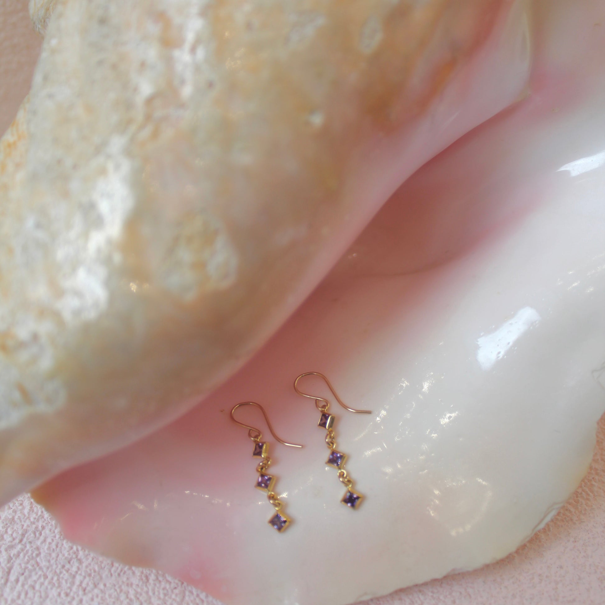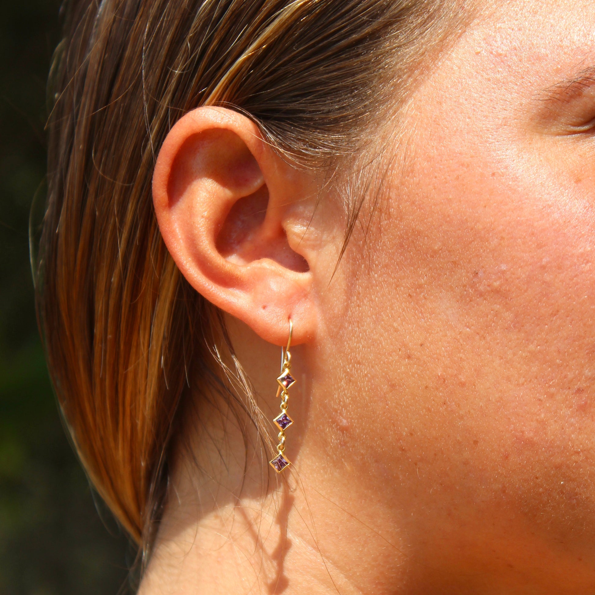 Details: Gold-filled ear wire with three amethyst gemstones