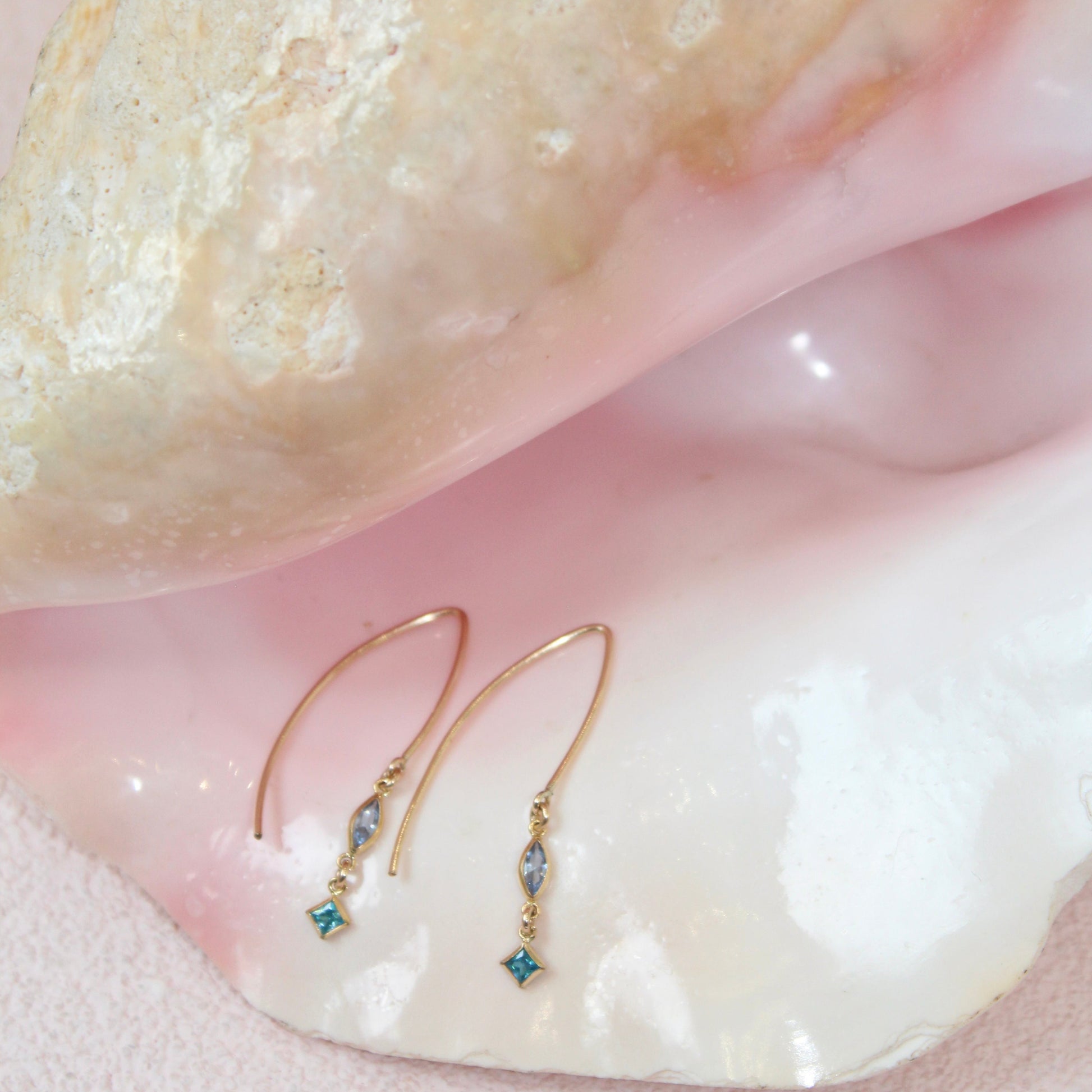 A touch of ocean shimmer just for you. These gold-filled turquoise/aquamarine gemstone earrings are perfect to fit in your mermaid inspired stack.