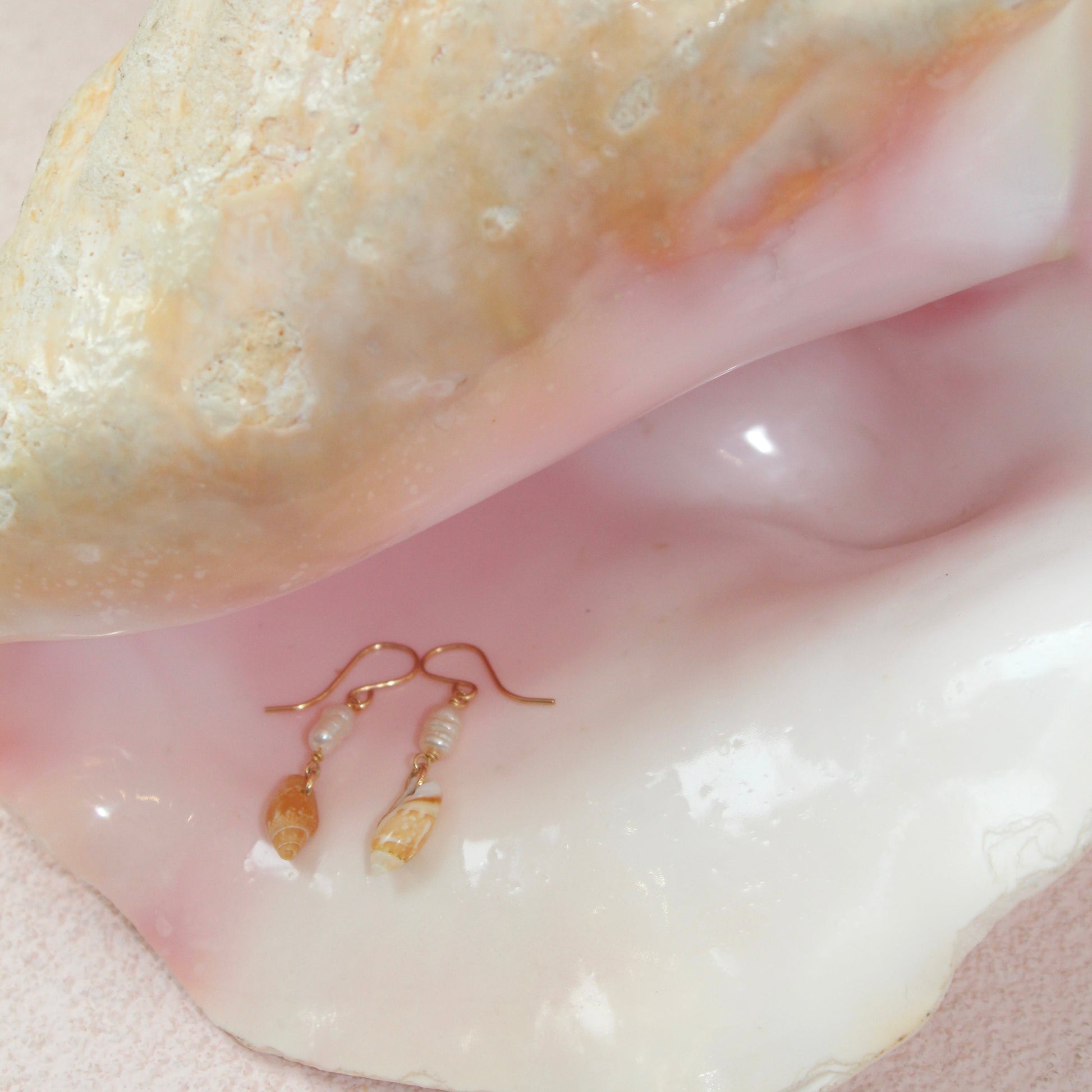 Meet your everyday beach pair. These gold-filled earring with freshwater pearls and hand picked sea shells are the perfect earrings for your beachy look.