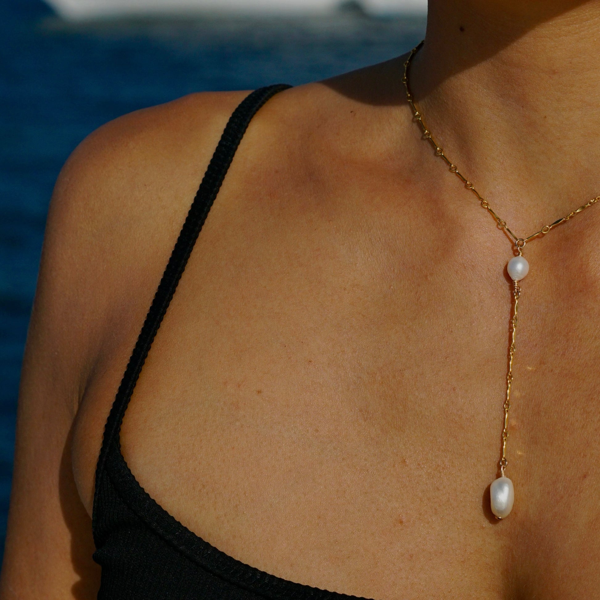 Details: 18" Freshwater pearl lariat on gold-filled SNAPPER chain with 2" drop down