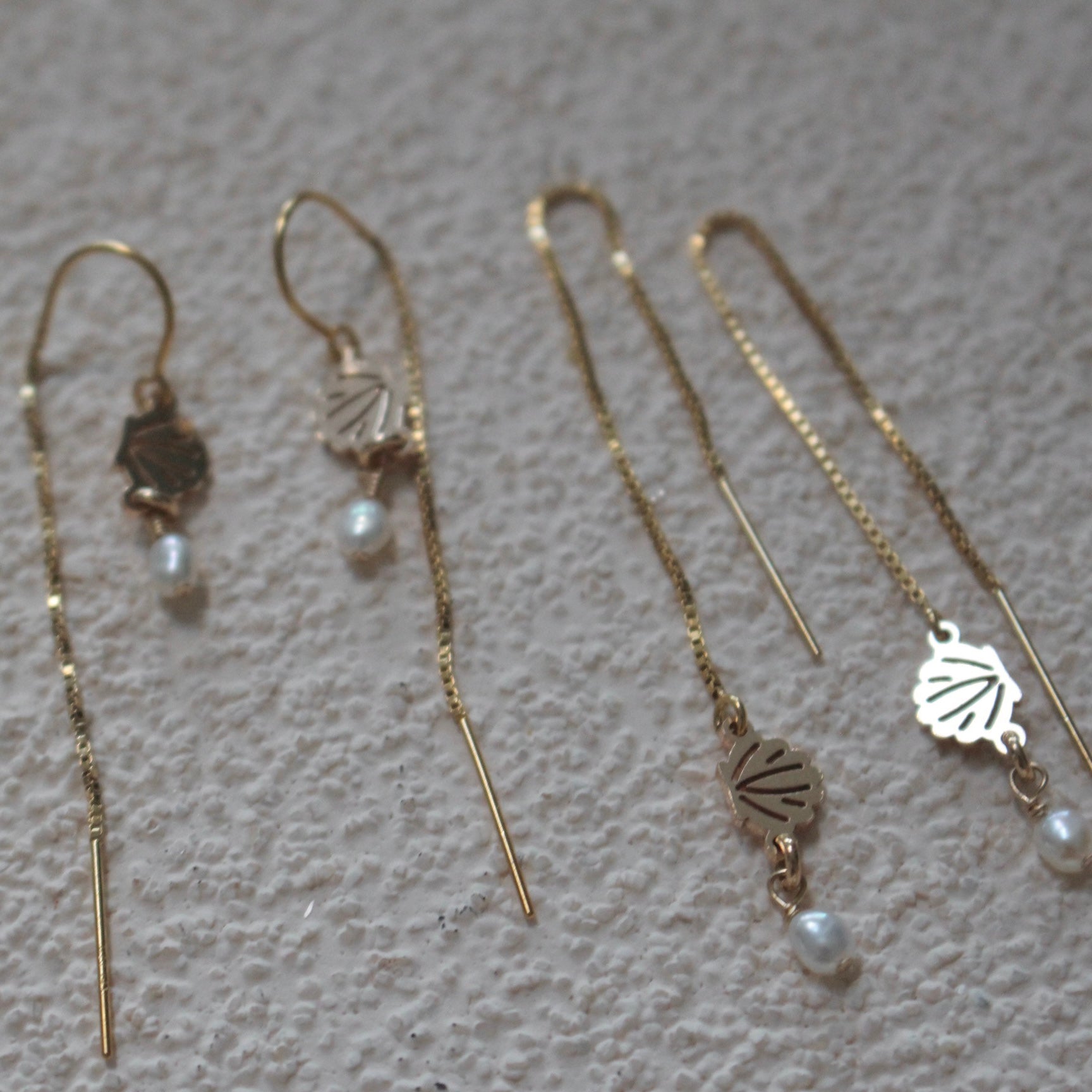 A threader earring has a charm on one end and a fine chain on the other that pulls through the ear for an airy, minimal look.